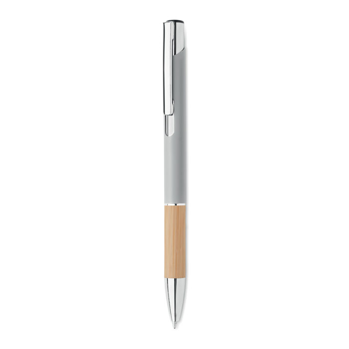 Кнопочная ручка из алюминия и бамбука. Синие чернила.