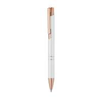 Кнопочная шариковая ручка из переработанного алюминия с деталями из розового золота. Синие чернила.