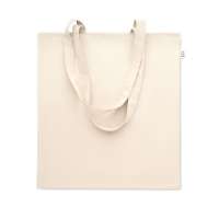 Сумка для покупок из переработанного хлопка (70%) и RPET(30%) с длинными ручками. 140 гр/м². Этот пункт может уменьшиться после впечатывания.