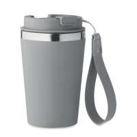 Термокружка с двойными стенками из переработанной нержавеющей стали (90%) и обычной нержавеющей стали (10%) с внешним покрытием из переработанного полипропилена с ремешком для запястья из RPET. Объем: 350 мл. Герметична.
