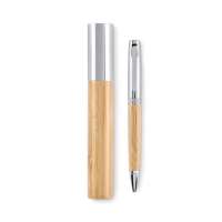 Металлическая шариковая ручка в бамбуковом корпусе в тубусе из бамбука с алюминиевой крышкой. Синие чернила.