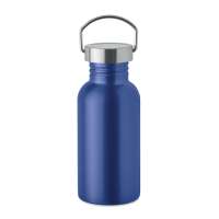 Одностенная бутылка из переработанной нержавеющей стали 90% и 10% нержавеющей стали. Крышка с ручкой для переноски. Герметична. Объем: 500 мл.