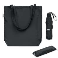 Ветроустойчивый зонт в 3 сложения (21 дюйм) с ручным открытием и закрытием из эпонжа 190T RPET в комплекте с сумкой-чехлом, имеющим скрытое отделение на молнии для хранения зонта и сохранения содержимого сумки сухим. Когда сумка не используется, она сворачивается, а отделение на молнии служит в качестве чехла для зонта.