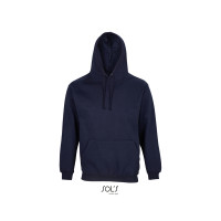 Карман-кенгуру, Капюшон на подкладке с завязками в тон и металлическими люверсами, Полая структура.