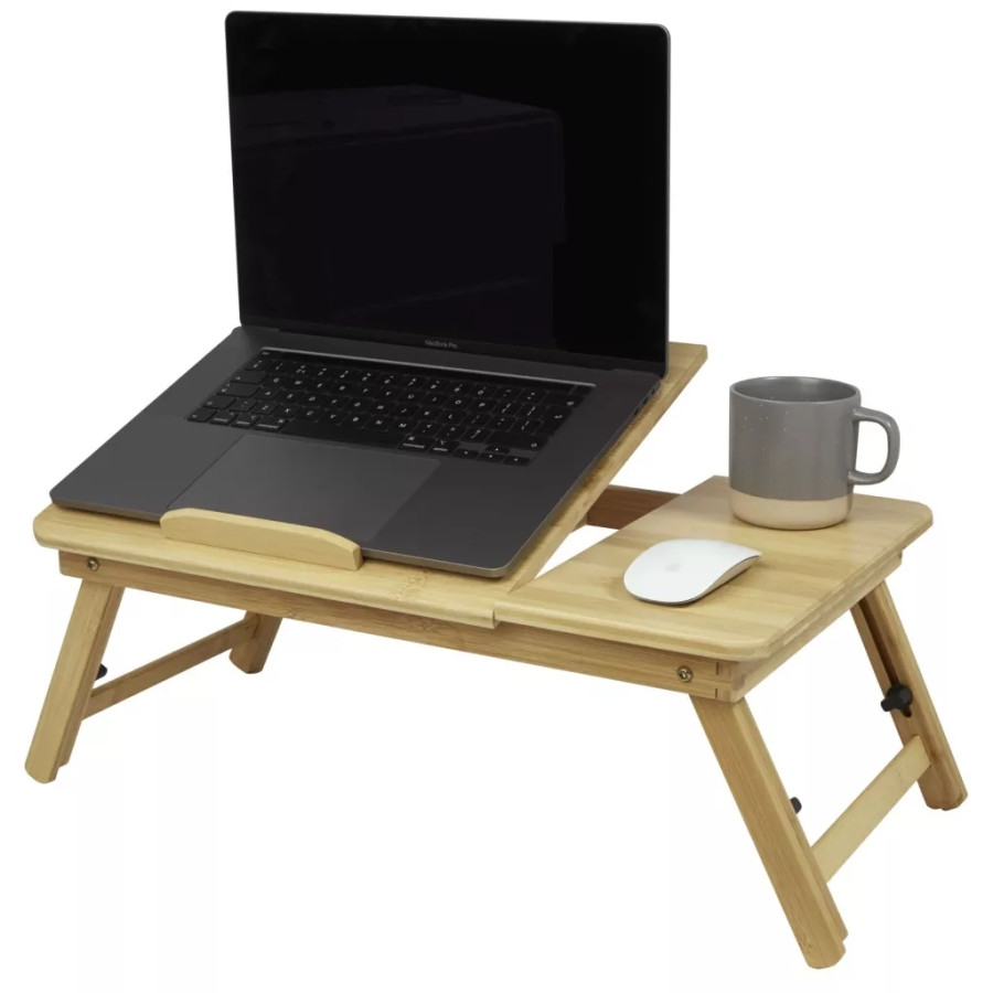 Складной и регулируемый стол из бамбука. Универсальный стол позволяет регулировать не только высоту, но и угол наклона для чтения книг, работы на ноутбуке, просмотра фильмов на планшете или приема пищи. На фиксируемом боковом столике можно разместить чашку, компьютерную мышь и/или ноутбук. Идеально подходит для использования на диване, в саду, в постели, на балконе или в парке. Бамбук используется из устойчивых, экологически и социально ответственных источников. Складной стол в самом высоком положении имеет размеры 68, 5 x 34 x 48 см. Поставляется с инструкцией по эксплуатации и упакован в подарочную коробку из переработанного картона размером 58 x 36 x 5, 5 см.