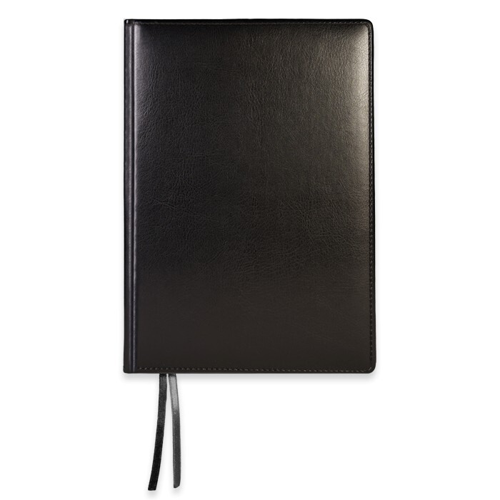 Форзацы из черной дизайнерской бумаги FSC. Двойное ляссе. Жесткая обложка Sherwood черного цвета с круглыми уголками из премиального кожзама от ведущего итальянского производителя. Черный срез блока с круглыми уголками. Ежедневник-еженедельник Week & Day выгодно выделяется на фоне стандартных форматов своим эксклюзивным дизайном и функциональностью.
