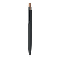 Шариковая ручка из переработанного алюминия с кнопкой из пробки и металлическим зажимом. Синие чернила.