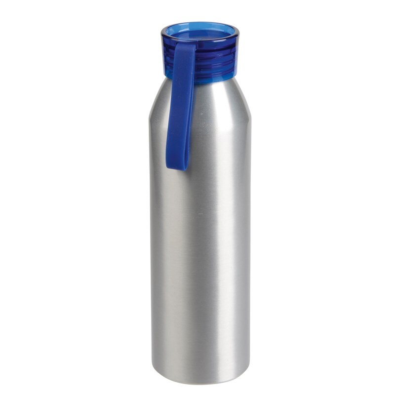 Алюминиевая бутылка COLOURED: цветная закручивающаяся пластиковая крышка, силиконовая петля на руку, объем: около 650 мл.