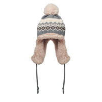 Вязаная шапка-ушанка из акрилового волокна с помпоном и подкладкой из полиэстера и флиса. Есть шильд для нанесения с одной стороны. Взрослый размер.