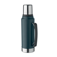 Термос с двойными стенками из переработанной нержавеющей стали 90% и 10% нержавеющей стали с боковой ручкой, крышкой из полипропилена и чашкой из переработанной нержавеющей стали. Герметичный. Емкость: 1 л.