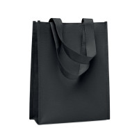 Небольшая подарочная сумка из нетканого материала RPET с короткими ручками и ластовицей. 80 г/м².