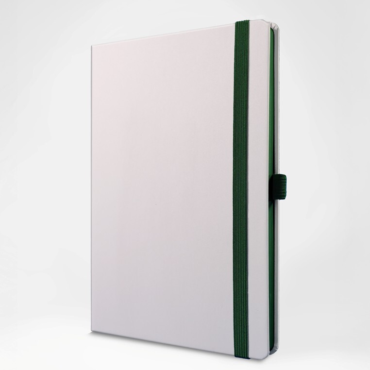 Записная книга формат 14, 5х21 см в линейку 256 страниц, кремовая бумага 70 г сертифицирована FSC. Дополнительно имеются страницы в точку, в клетку, для систематизации проектов, а также листы без разметки с перфорацией. Печать в 1+1 цвет, все страницы пронумерованы. Шитый блок Форцазы из черной дизайнерской бумаги 140 гр FSC. Белая обложка из высококачественного кожзама от ведущего итальянского производителя. Ляссе в тон обложки. Резинка 10 мм в тон обложки.