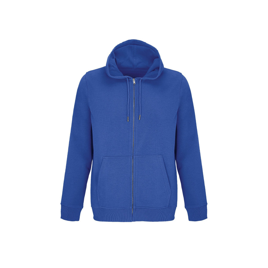Шитый трикотаж, Втачные рукава, Манжеты и нижняя часть на трикотажной резинке 2x2, Карман-кенгуру, Капюшон на подкладке из джерси, Завязки с металлическими наконечниками и люверсами, Основная застежка на молнии под планкой, Металлические молния и бегунок, Полумесяц и окантовка из джерси на горловине