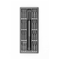 Набор высокоточных отверток для ремонта смартфонов, планшетов, ноутбуков (включая iPhone, iPad, MacBook Air и MacBook Pro), а также игровых консолей Nintendo, PlayStation и Xbox. Включает в себя 24 магнитные прецизионные биты из прочной стали S2 (твердость HRC 58–62). Эргономичная алюминиевая ручка с анодированным покрытием и противоскользящей вращающейся крышкой. Удобный алюминиевый кейсс с пружинным механизмом и магнитным основанием.
