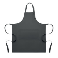 Длинный кухонный фартук из поликоттона 240 г/м² (35% хлопок, 65% полиэстер) с двумя передними карманами и регулируемым ремешком с металлической пряжкой.