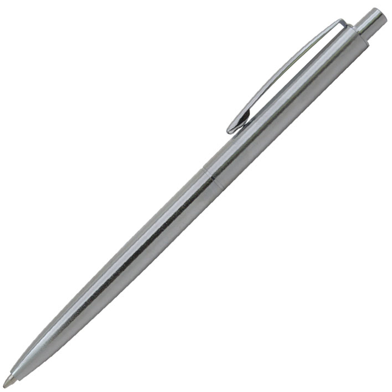 Ручка шариковая, металлическая, хром, механизм нажимной, цвет стержня синий, покрытие глянцевое, материал корпуса металл, цвет корпуса серебро