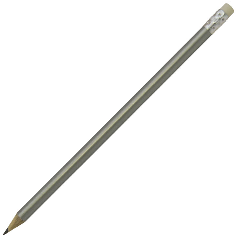 Карандаш деревянный НВ твердость со стеркой, цвет серебро