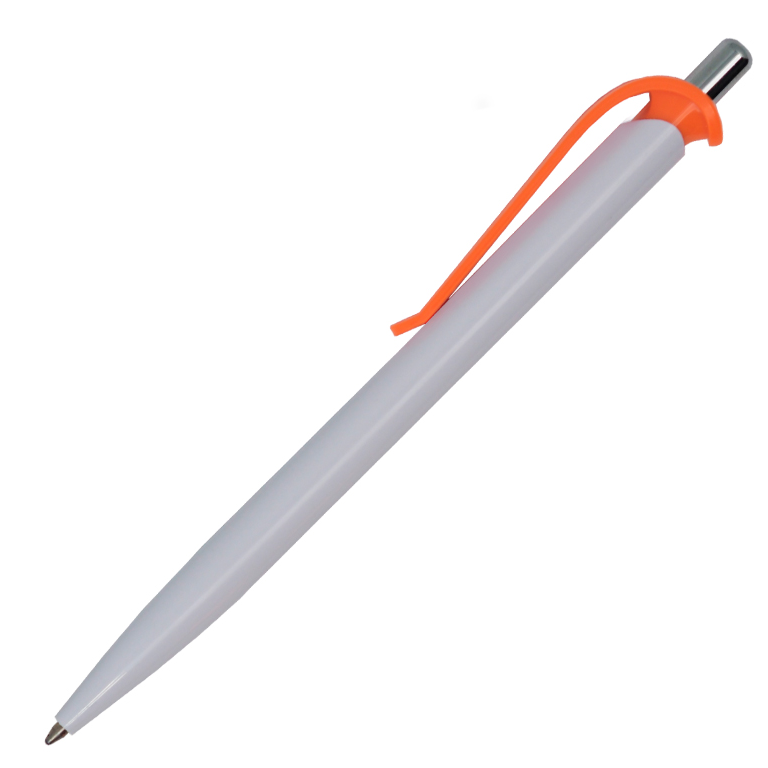 Ручка шариковая, пластиковая, белая/оранжевая, Efes, механизм нажимной, цвет стержня синий, покрытие глянцевое, материал корпуса пластик, цвет корпуса белый