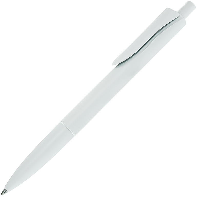 Ручка шариковая, пластиковая, белая, механизм нажимной, цвет стержня синий, покрытие sand, материал корпуса пластик, цвет корпуса белый