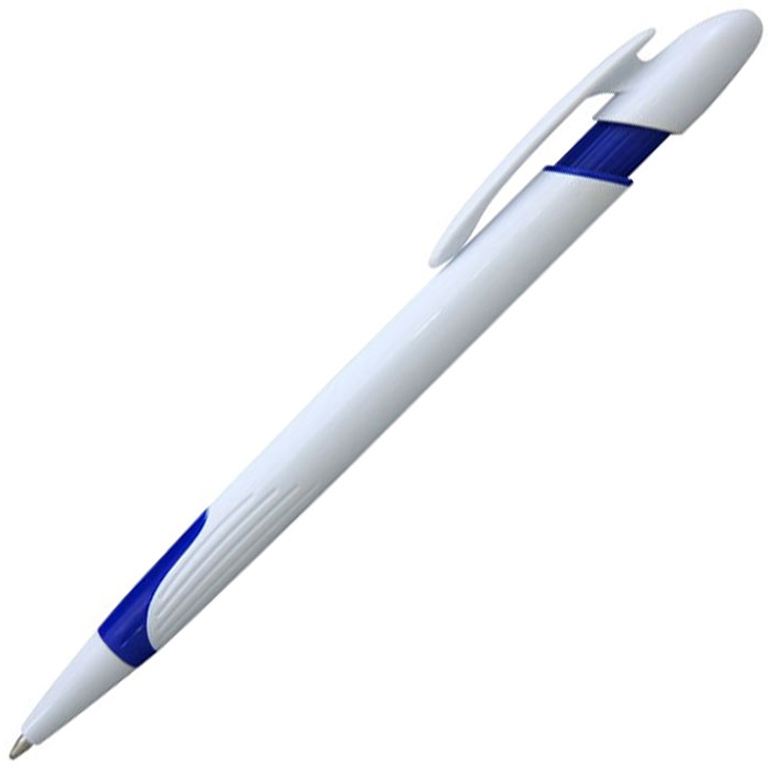 Ручка шариковая, пластиковая, белая/синяя, механизм нажимной, цвет стержня синий, покрытие глянцевое, материал корпуса пластик, цвет корпуса белый