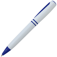 Ручка шариковая, пластиковая, белая/синяя, механизм поворотный, цвет стержня синий, покрытие глянцевое, материал корпуса пластик, цвет корпуса белый