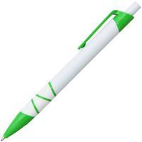 Ручка шариковая, пластиковая, белая/зеленая, механизм нажимной, цвет стержня синий, покрытие глянцевое, материал корпуса пластик, цвет корпуса белый