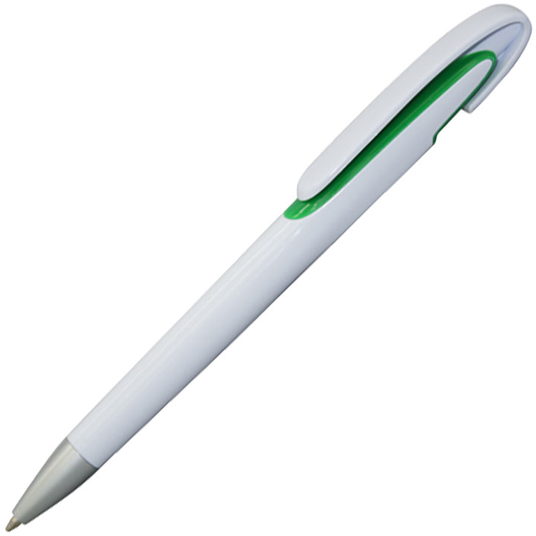 Ручка шариковая, пластиковая, белая/зеленая