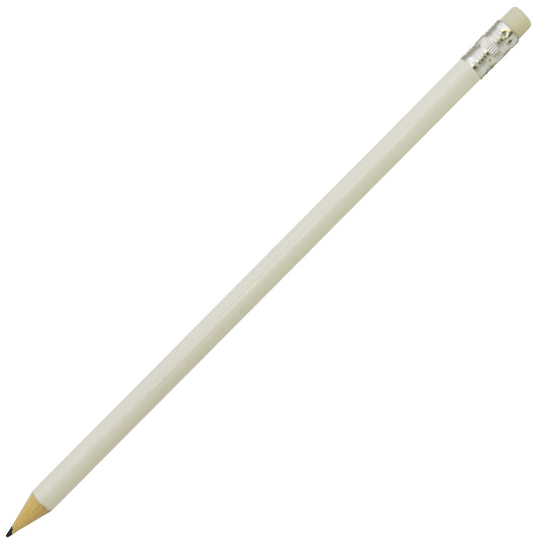 Карандаш деревянный НВ твердость со стеркой, цвет белый, цвет корпуса белый