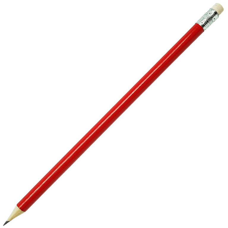 Карандаш деревянный НВ твердость со стеркой, цвет красный