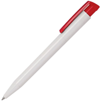 Ручка шариковая, пластиковая, белая/красная, механизм нажимной, цвет стержня синий, покрытие глянцевое, материал корпуса пластик, цвет корпуса белый