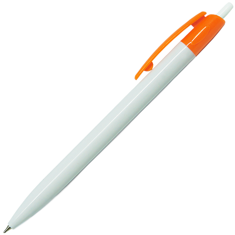 Ручка шариковая, пластиковая, белая/оранжевая, Barron, механизм нажимной, цвет стержня синий, покрытие глянцевое, материал корпуса пластик, цвет корпуса белый