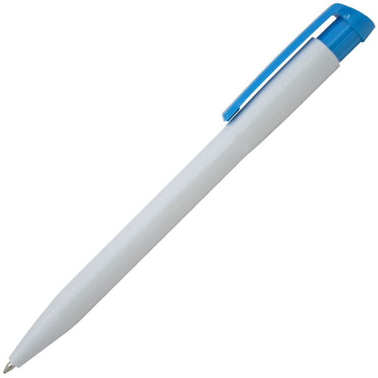 Ручка шариковая, пластиковая, голубой, механизм нажимной, цвет стержня синий, покрытие глянцевое, материал корпуса пластик, цвет корпуса белый