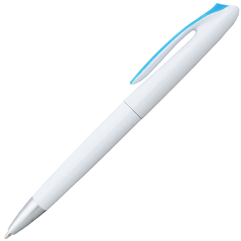 Ручка шариковая, пластиковая, белая/голубой, механизм поворотный, цвет стержня синий, покрытие глянцевое, материал корпуса пластик, цвет корпуса белый