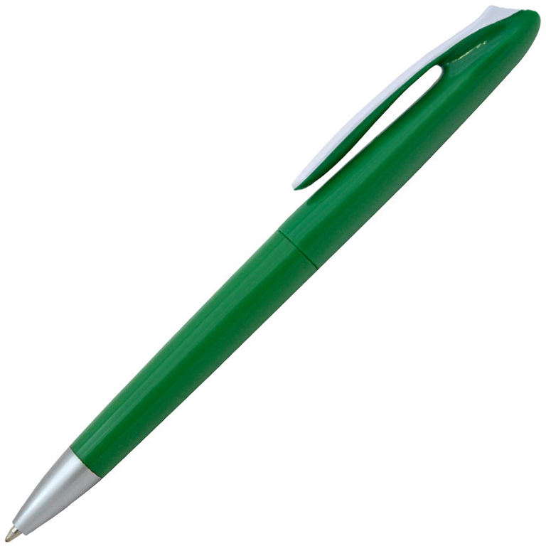 Ручка шариковая, пластиковая, зеленая/белая, механизм поворотный, цвет стержня синий, покрытие глянцевое, материал корпуса пластик, цвет корпуса зеленый