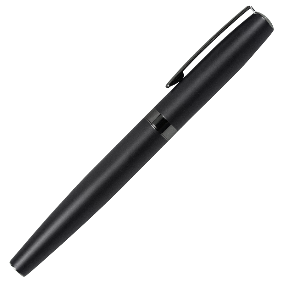 Роскошная ручка с синими чернилами и элементами отделки цвета gun metal. Чернила на водной основе обладают меньшей вязкостью, что позволяет роллеру оставлять след, схожий со следом перьевой ручки. Но в отличие от последней, для письма роллером требуется меньшее давление на пишущую поверхность, а значит кисть руки значительно меньше напрягается. Поэтому письмо становится мягче и проще. Длина письма 1000 метров. Толщина письма 1 мм.