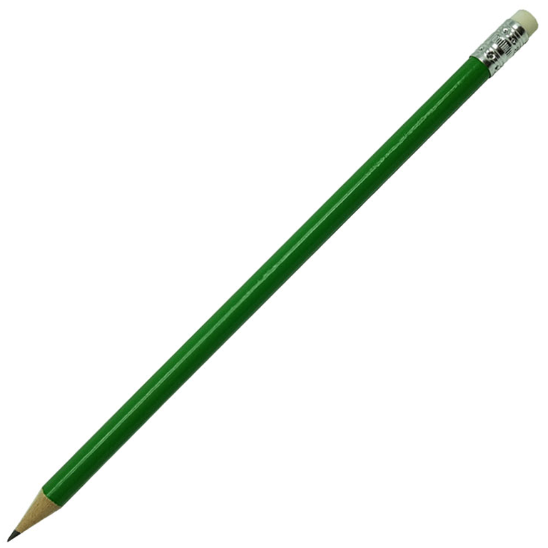 Карандаш деревянный НВ твердость со стеркой, цвет зеленый