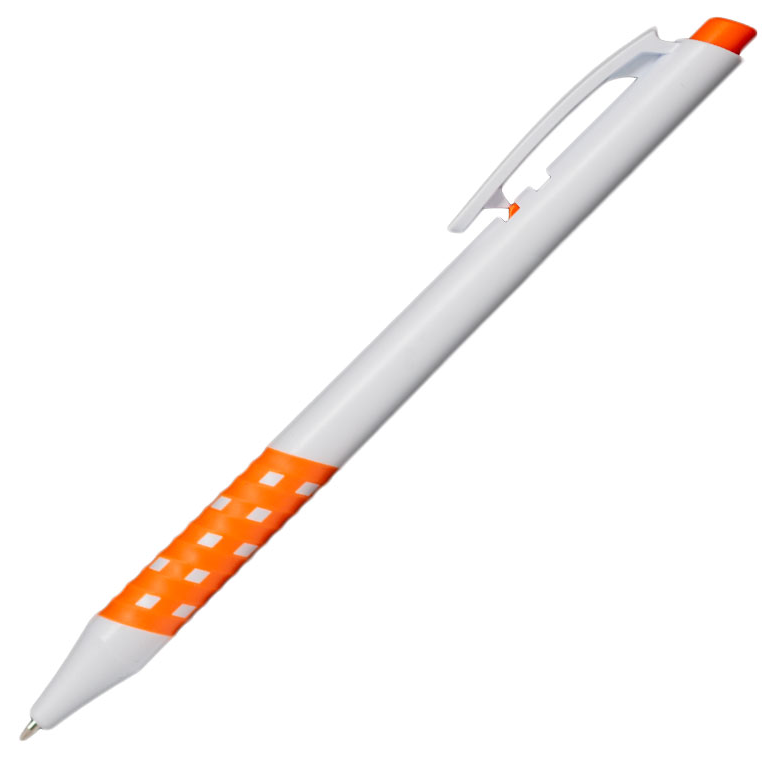 Ручка шариковая, пластиковая, белая/оранжевая, Pixel