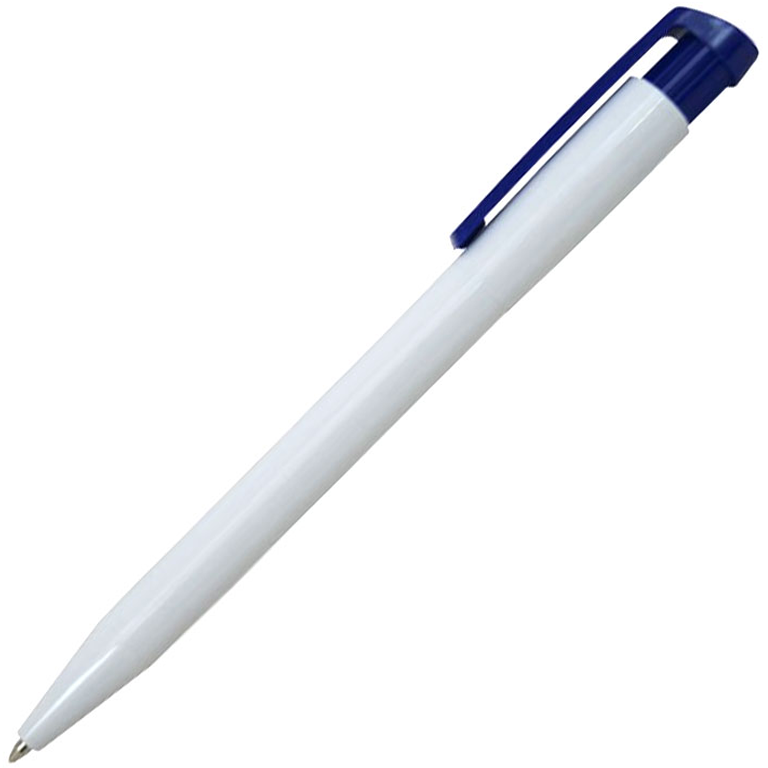 Ручка шариковая, пластиковая, белая/синяя, механизм нажимной, цвет стержня синий, покрытие глянцевое, материал корпуса пластик, цвет корпуса белый
