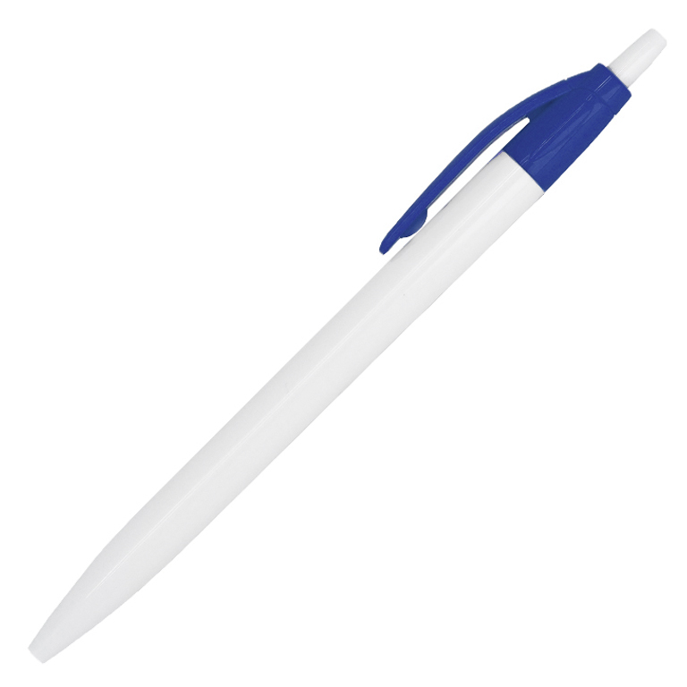 Ручка шариковая, Simple, пластиковая, белая/синяя, механизм нажимной, цвет стержня синий, покрытие глянцевое, материал корпуса пластик, цвет корпуса белый