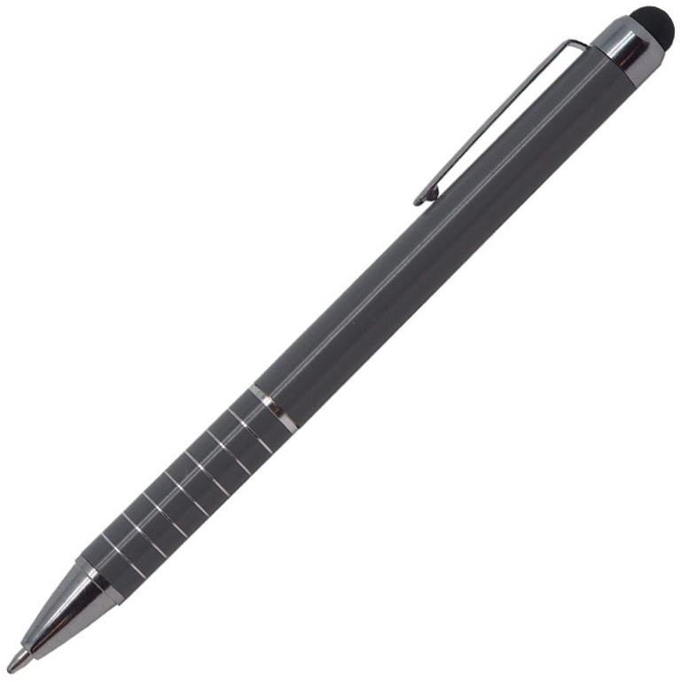Ручка шариковая, металлическая, SHORTY с функцией ТАЧПЕН, серая, механизм поворотный, цвет стержня синий, покрытие глянцевое, материал корпуса металл, цвет корпуса серый