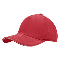 Кепка 5- панельная Salerno Heavy 350, c белым сендвичем, красная