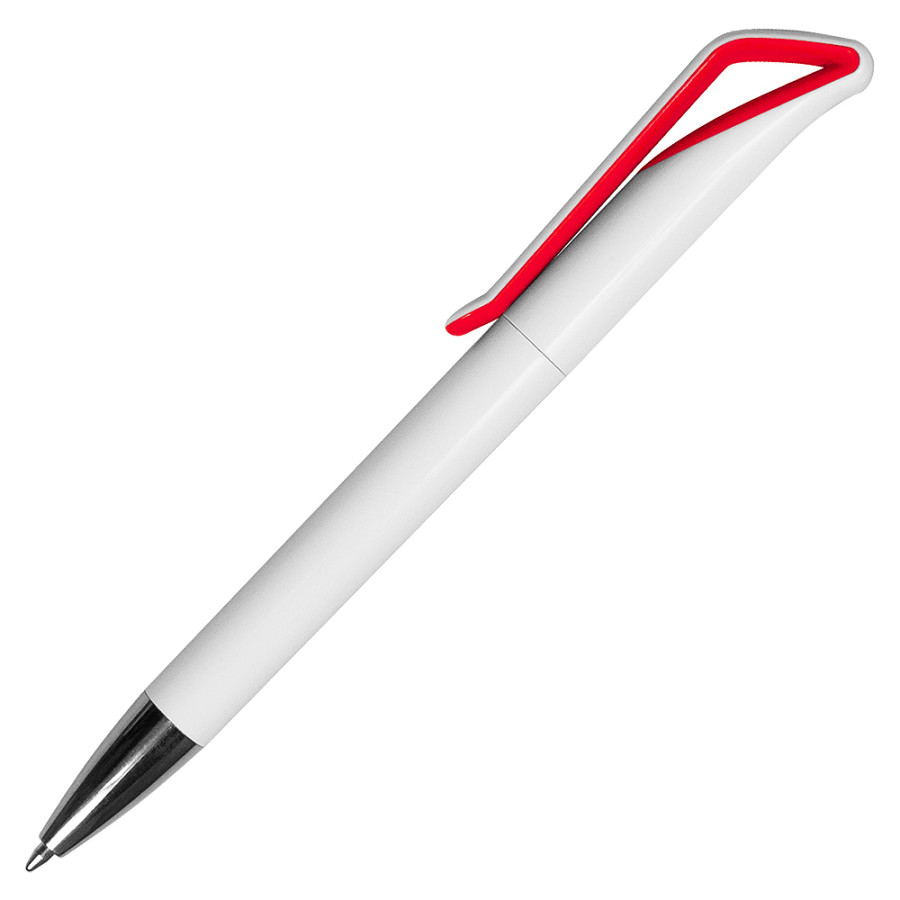 Ручка шариковая Pelican, пластиковая, белая/красная, механизм поворотный, цвет стержня синий, покрытие глянцевое, материал корпуса пластик