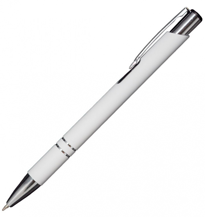 Ручка шариковая, Legend Soft Touch Mirror Silver Requis, белая, механизм нажимной, цвет стержня синий, покрытие Софт Тач, материал корпуса металл, Софт Тач