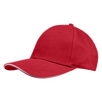 Кепка 6-панельная Oxford 300, c белым сендвичем, красная