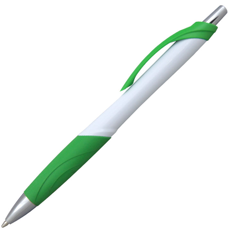 Ручка шариковая, пластиковая, белая/зеленая, механизм нажимной, цвет стержня синий, покрытие глянцевое, материал корпуса пластик, цвет корпуса белый