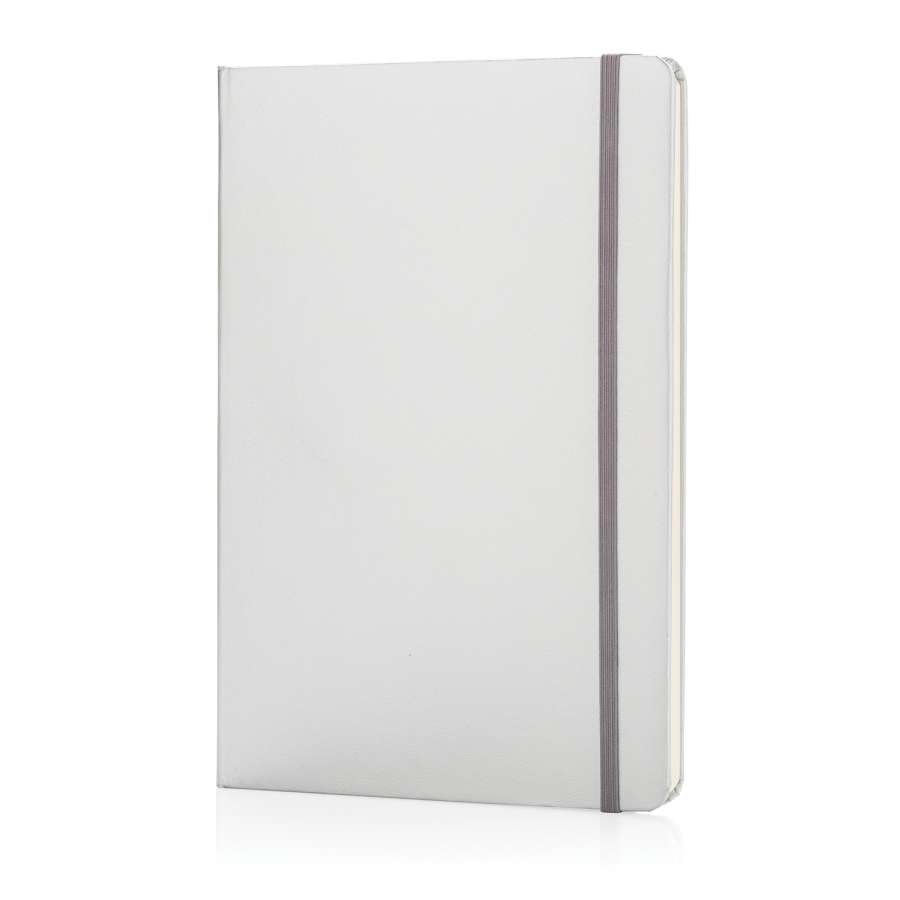 Блокнот для записей Basic в твердой обложке формата А5 на резинке с ляссе. 72 страницы, линованная бумага кремового цвета, плотностью 70 г/м2.