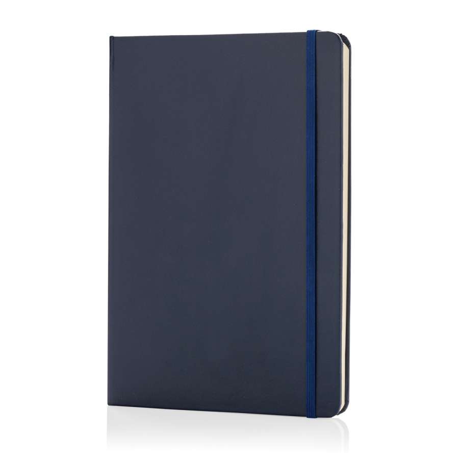 Блокнот для записей Basic в твердой обложке формата А5 на резинке с ляссе. 72 страницы, линованная бумага кремового цвета, плотностью 70 г/м2.
