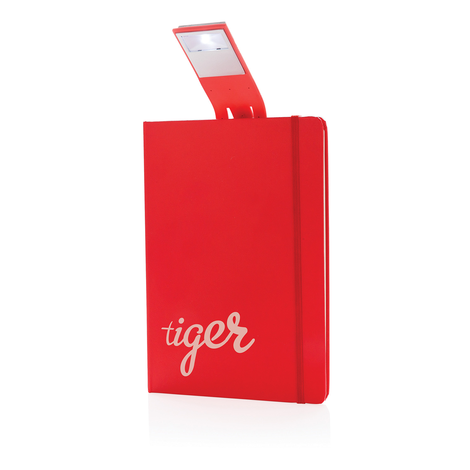 Стильный блокнот формата А5 в твердой обложке дополнен удобной закладкой с интегрированным светодиодным фонариком. 72 линованных листа изготовлены из приятной кремовой бумаги плотностью 70г/ м2.