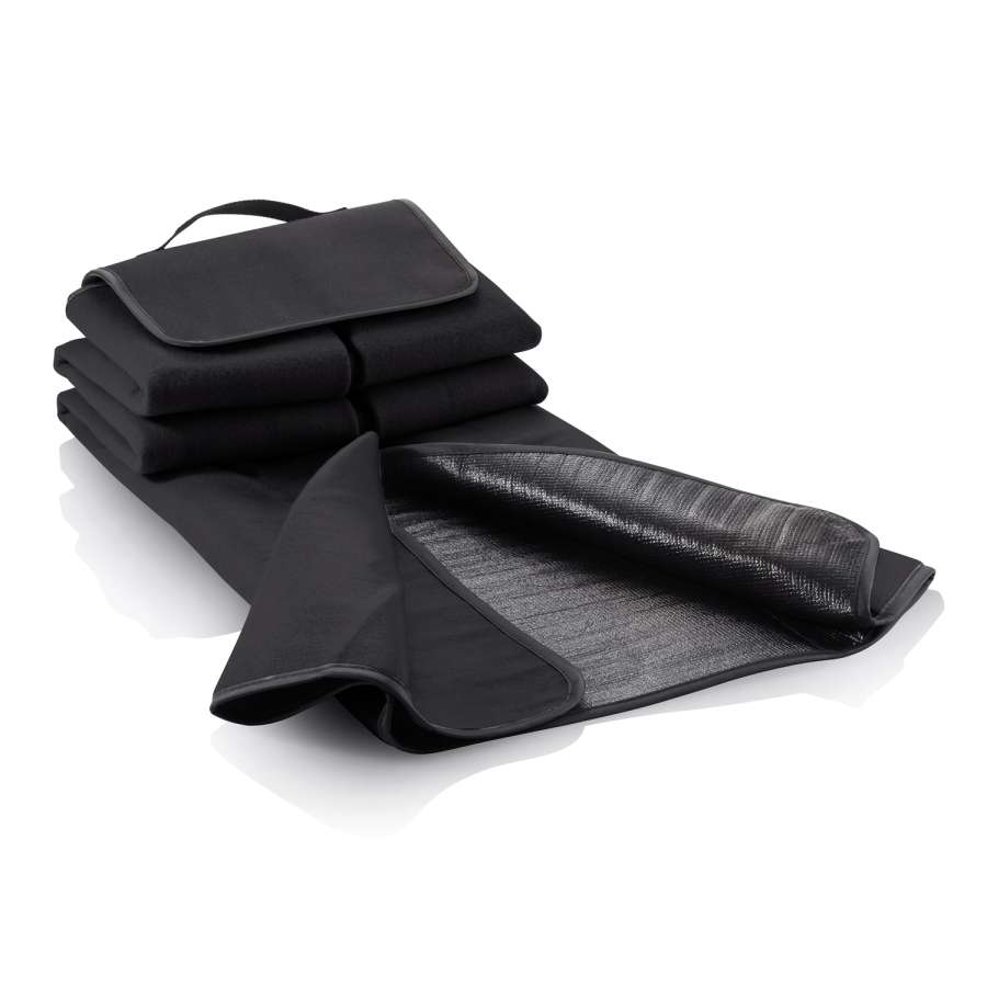 Удобный и практичный плед для пикника из флиса плотностью 160 г/м2 с подкладкой из вспененного полиэтилена, надежно защищающей от холода и влаги. В сложенном виде плед напоминает сумку, есть удобная ручка для переноски. Размер в разложенном виде: 130х145 см.