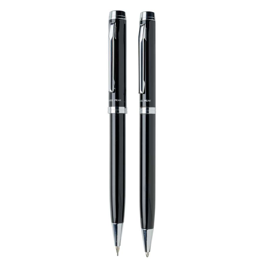 Элегантный набор Luzern от бренда Swiss Peak выделяется своим строгим лаконичным дизайном. В него входят шариковая ручка и механический карандаш. В ручке используются качественные немецкие чернила, которых хватит, чтобы прочертить линию длиной 1200 м. Механический карандаш поставляется с тремя сменными стержнями толщиной 0, 7мм. Набор упакован в фирменную подарочную коробку.